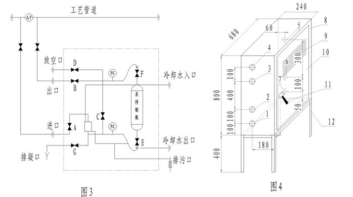 3、HQ-403型采樣器(采樣接管流程圖見圖5、安裝尺寸示意圖見圖6、編號說明見表4)